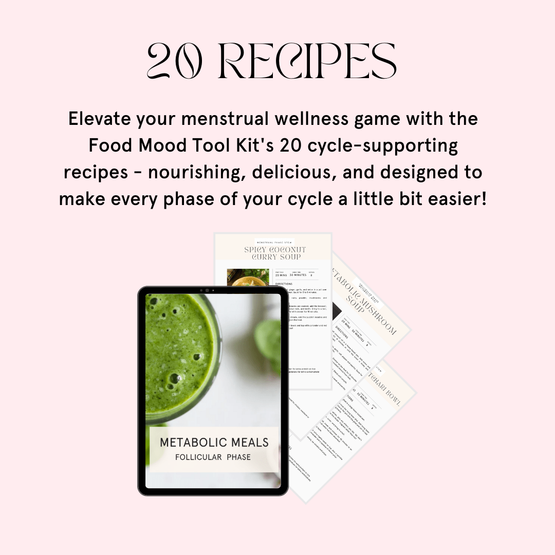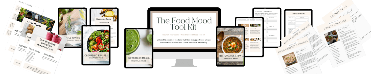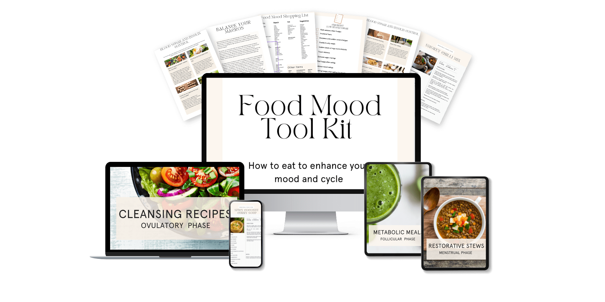 Take control of your cycle with the Food Mood Tool Kit - featuring guides, food lists, and 20 delicious cycle-supporting recipes